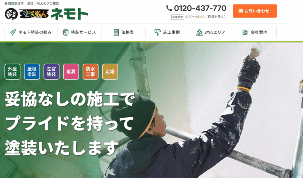 ネモト塗装工業(有限会社ネモト塗装工業)は、静岡県東部を拠点に外壁塗装・屋根塗装・防水工事を専門とする地域密着型の塗装会社です。沼津市に本社を構え、三島市・清水町・函南町などを対応。にはショールームも展開しており、地元クライアントとの対話を重視した対応体制を取っています。